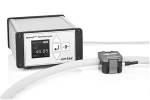 的BioProTT无创流量计由Em Tec是一种单购买多用途设备,可以集成到任何单使用设置,而不需要产品接触。流量计由传感器上的夹钳组成,夹紧在大多数类型的预定尺寸的软管上。两对压电陶瓷换能器以X形排列,测量超声波在管道横截面上沿水流上下移动的时间差。沿流动方向(下游)发出的超声信号比逆流方向(上游)发出的超声信号接收速度快,且差异的严重程度与体积流速成正比。一个附加在传感器上的评估装置接收结果数据,并以极高的精度计算流量。从研究实验室到cGMP, BioProTT流量计可以集成在任何水平的工艺开发或制造。数据输出既可以在线读取,也可以在线并吸收到预先存在的过程管理或监控系统中。
